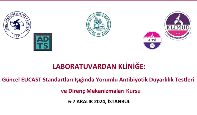 LABORATUVARDAN KLİNİĞE: Güncel EUCAST Standartları Işığında Yorumlu Antibiyotik Duyarlılık Testleri ve Direnç Mekanizmaları Kursu, 6-7 Aralık 2024 tarihlerinde Şişli Hamidiye Etfal Eğitim ve Araştırma Hastanesi Tıbbi Mikrobiyoloji Anabilim Dalı ev sahipliğinde yapılacaktır.